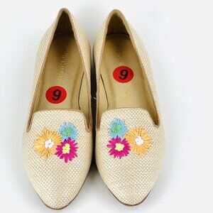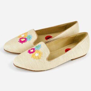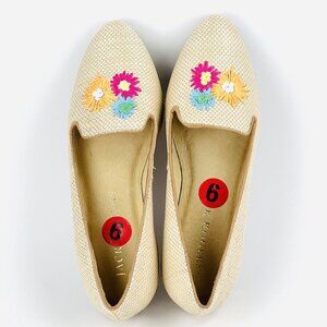 Jack Rogers Women's Beige Slip-on Flat Loafers Size 6 Flower Embroidered
