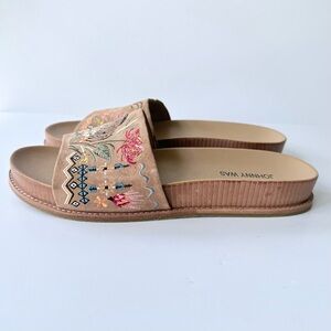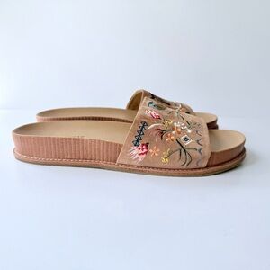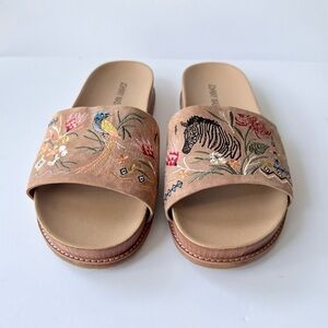 NWOB Johnny Was Watipaso Embroidered Suede Slide Sandals Tan Size 10
