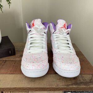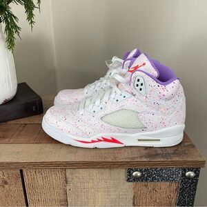 New without box Jordan 5 Easter’s released in 2020. White multi with purple. Grade school size 6 which fits a women’s 7.5. Never worn.