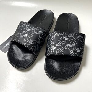 NWOB KARL LAGERFELD Men Slide Slip On Sandal Black Illustration Pool Beach