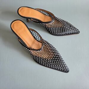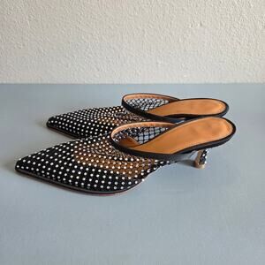 NWOB Kachorovska ALEXA Black Mesh Mules Embellished with Crystals Sz EU 38 US 8