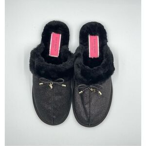 NWOB Kate Spade Lacy Slippers Mule Size 10B Black Glitter Faux Fire Gold Charm