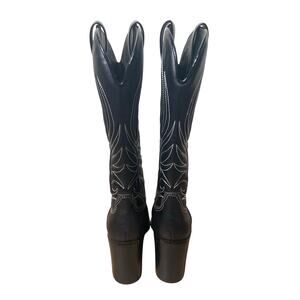 Yeehaw! Get ready to ride in style with these New Without Box Katy Perry Black Cowboy Boots! These boots feature a classic cowboy design with a modern twist - a shiny silver toe. Perfect for adding a touch of sparkle to any outfit, whether you're hitting the town or just kicking back.