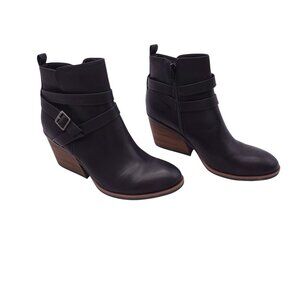 NWOB Korks Heidi Ankle Heeled Bootie Sz 9.5 M Black Faux Leather Buckle