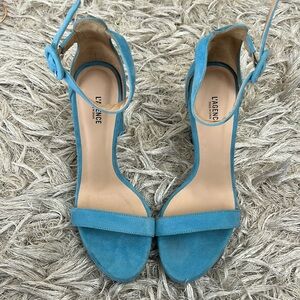 NWOB L’Agence Cecile Blue Suede Ankle Strap Platform High Heel Sandals Sz 39 US9