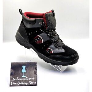 NWOB Lands End Men's Black & Red Fabric Suede Leather Hiking Boots Sz 11D 2704