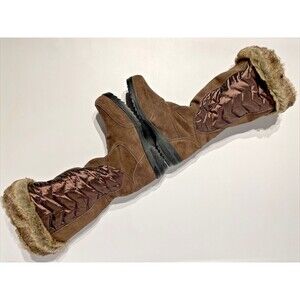 NWOB Lands’ End Sophia Tall Zip Snow Winter Boots Brown Suede Fur Women’s Size 8