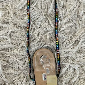 Size 6.5, brand new without box. Please note, there’s one missing crystal, completely unnoticeable while wearing. Retail $315.