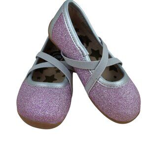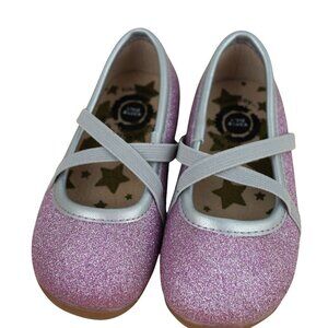 NWOB Livie & Luca Aurora Girls Pink Glitter Ballet Flats Leather Shoes Infant 5