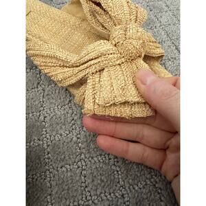 New, never worn and without box. Some light fraying on end of one bow (see pic), otherwise in excellent condition.