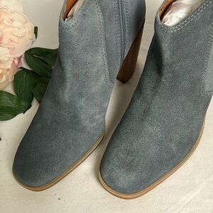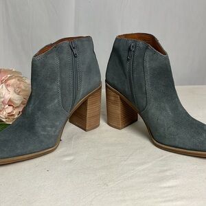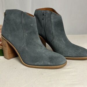 NWOB Lucky Brand Pellyon Womens Gray Suede Leather Stacked Heel Ankle Boot 8.5