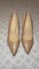 These Marc Fisher heels in Light Natural Leather feature a sleek pointed-toe design and a sturdy block heel, making them a versatile choice for both professional and formal settings. Crafted in a smooth tan finish, they offer a minimalist silhouette that complements a wide range of outfits.