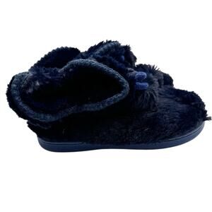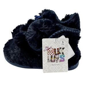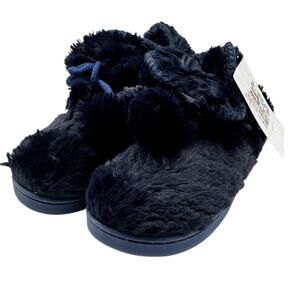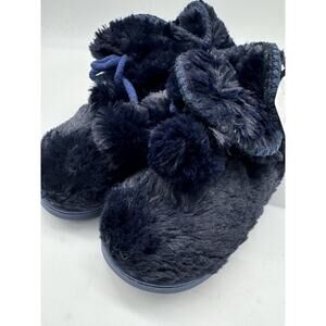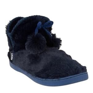 NWOB MUK LUKS Faux Fur Amira Slipper Boots Navy Blue Pom Pom Women’s 5-6 Small