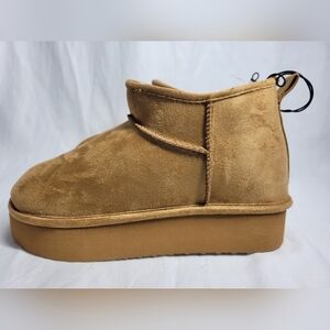 NWOB Madden Girl Platform Ankle Mini Boot 9.5 Tan Chestnut