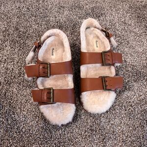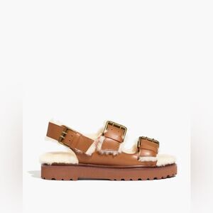 NWOB Madewell The Shearling-Lined Madelyn Sandal Golden Pecan 9 Leather NA977