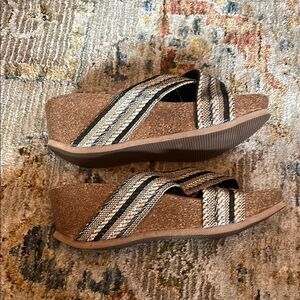 Stylish wedge sandals with striped design. Comfortable and chic. Size 10, brand new