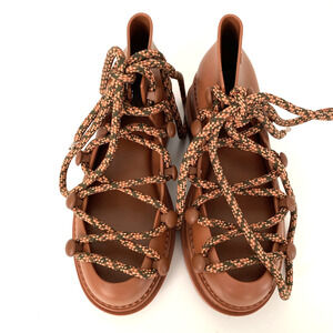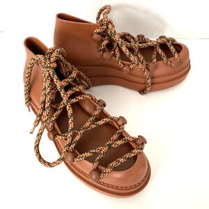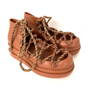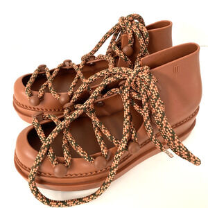 NWOB Melissa Ninety Sandal Platform Shoe Lace Up Brown Round Toe Wedge J…