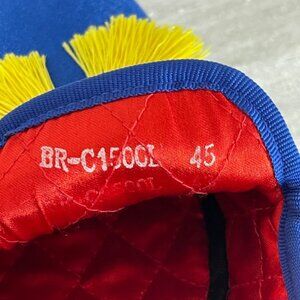 Men's Blue velvet loafers with yellow/gold tassels and red satin quilted lining, and red hard leather soles. Smoking slippers