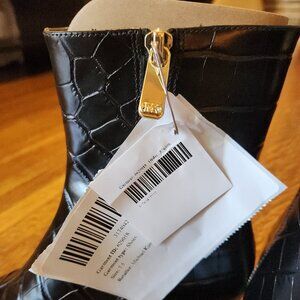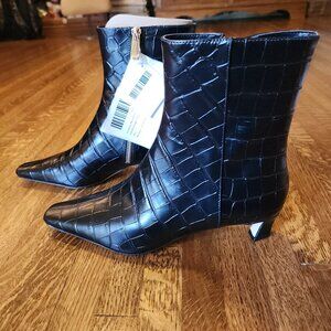 NWOB Michael Kors Cosmo Crocodile Embossed Leather Kitten Heel Dress Bootie