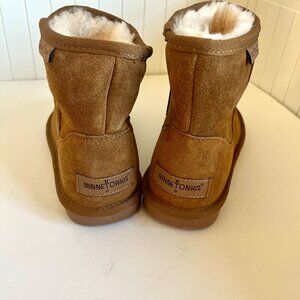 NWOB Minnetonka Brown Shearling Line Suede Ankle Boots size 7