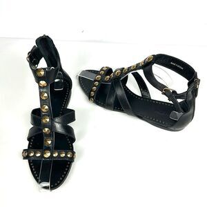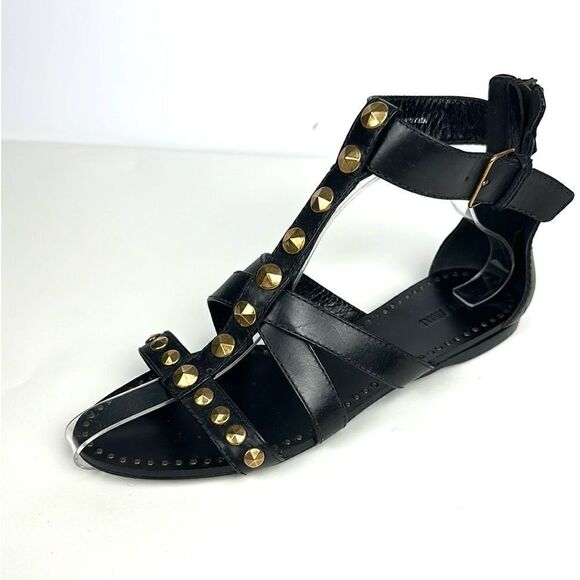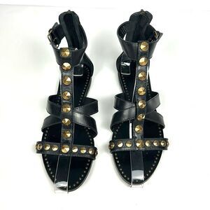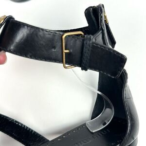 NWOB Miu Miu (Prada) Studded T-Strap Gladiator Sandal Black Leather Back Zip