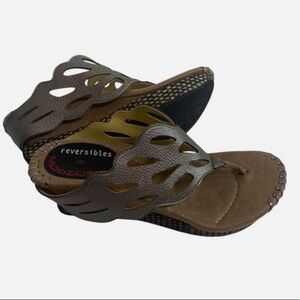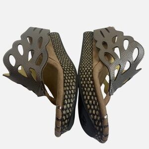 NWOB Modzori Troya 3 Reversible Wedge Thong Platform Sandals Butter/Pewter Sz 9