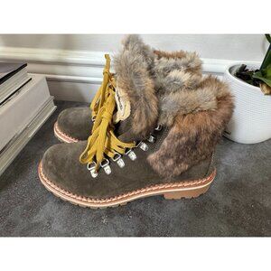 NWOB Montelliana 1965 Fur Ankle Boots Green Suede 37EU