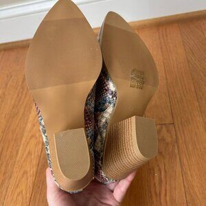 NWOB Multi-colored Snakeskin Style Side Slit Booties Boots Size 8 Chunky Heel