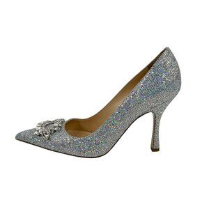 Nalebe by Amina Means Lirum Silver Glitter Embellished Pointed Toe Heels
