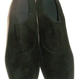 Cool chic and comfy Stuart Weitzman black suede high heel booties with elastic panelon inner side for comfort and suede "apron" in front. These are new, unworn and in perfect condition. Marked 9.5 Heel 3.5" Width 3.25" Insole 10.5 Retail is $650.