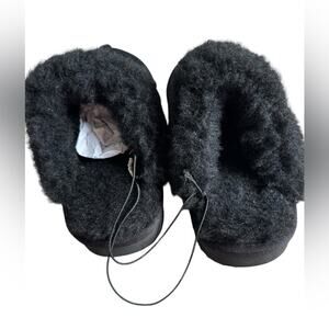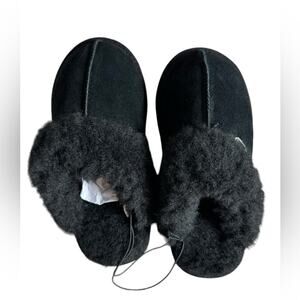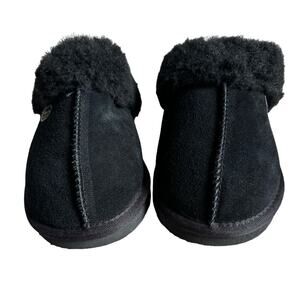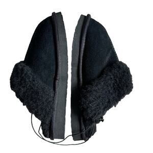 NWOB Pawz by Bearpaw MacKenzie Suede scuff slipper black size womens 6 fur lined