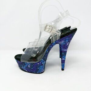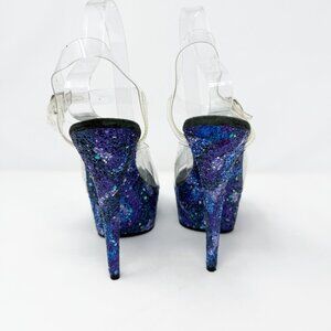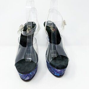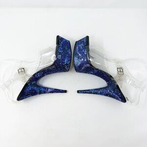 NWOB Pleaser Clear PVC High Platform Stilettos w Blue & Purple Glitter Size 10