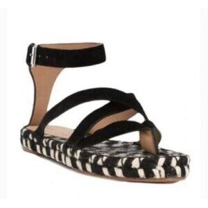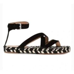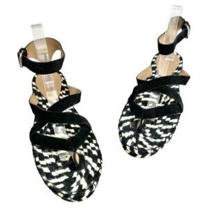 NWOB Proenza Schouler Suede Espadrille Black White Woven Sandals US Size 11