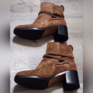 NWOB Rag & Bone Brown Suede Leather Hazel Strappy Buckle Stacked Heel Boot Sz 38
