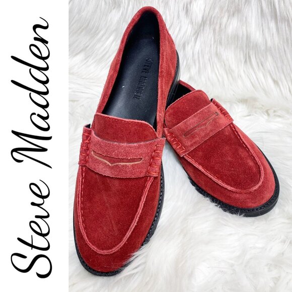 NWOB STEVE MADDEN MADISON RED SUEDE LEATHER LOAFER RESORT ELEGANT, WOMEN’S 9.5