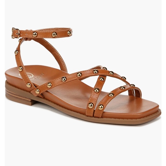 NWOB Sam & Libby Brandi 2 Women's Tan Studded Strappy Gladiator Flat Sandals