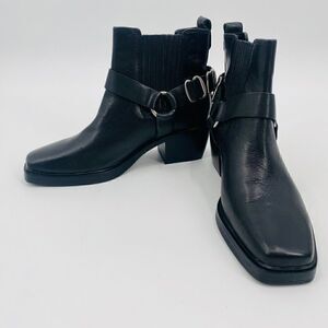 NWOB Sam Edelman Womens Size 8M Black Pull On Bellamie Bootie Grunge Square Toe