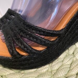 NWOB Sbicca Black Jute Platform Espadrilles Wedge Sandals