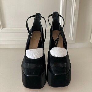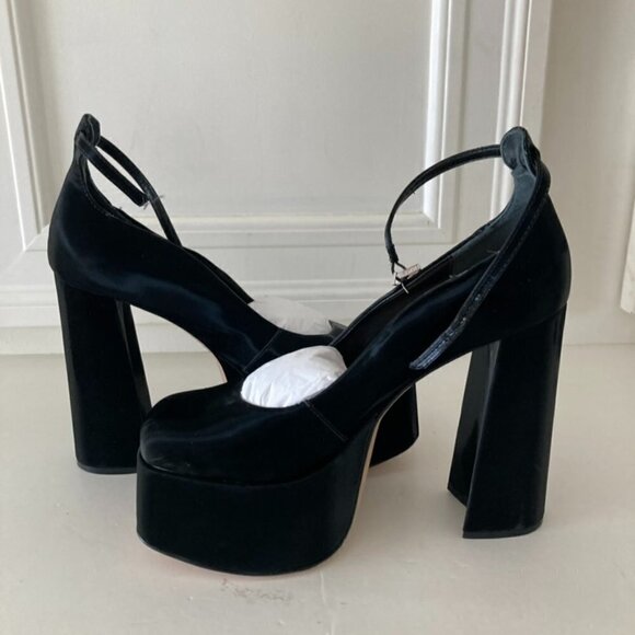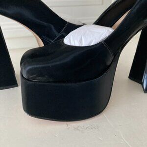 NWOB Schutz Free People Darlene Black Satin Platform Heels Sz 8.5