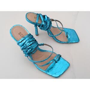 NWOB Schutz Lily Metallic Leather High Heel Sandal Turquoise Blue Size 6.5 B
