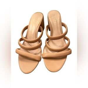NWOB Schutz Women’s Olly Mid Block Nappa Leather Sandals in Honey Beige size 10