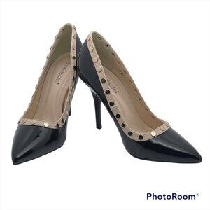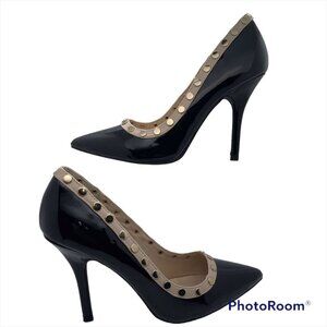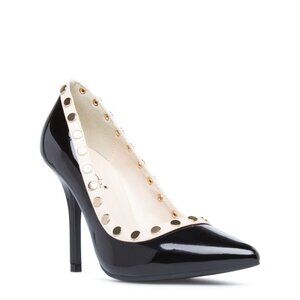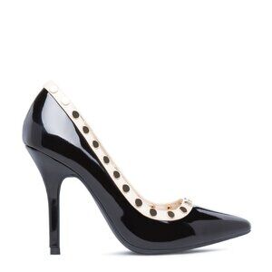 A classic and feminine pump is given a little edge with metal embellishment for a chic pair that transitions from lunch meetings to date nights.
