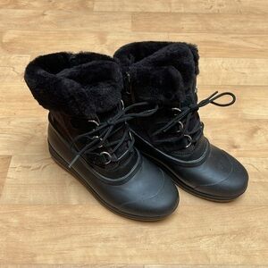 NWOB Sperry Women’s Pacifica Alpine Rain Boot Black Corduory/Faux Fur size 6