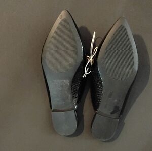 Upgrade your fall shoe game with these chic pointed-toe black mules featuring a luxe gold chain detail and textured finish. Sleek, versatile, and perfect for everything from workwear to weekend looks. Retailing at $59—get them here for less!Â