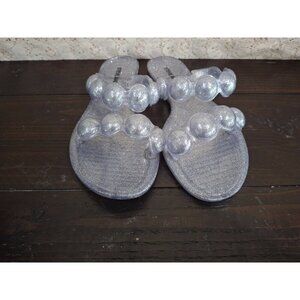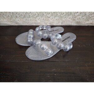 NWOB Steve Madden Zaza Silver Metallic Bubble Strap Slide Sandals/Size 6