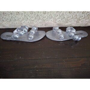 NWOB Steve Madden Zaza Silver Metallic Bubble Strap Slide Sandals/Size 6