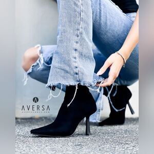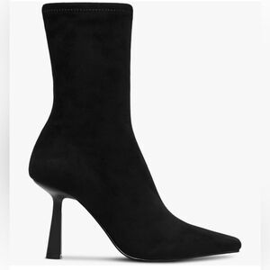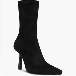 NWOB Steve Madden Vakay Black Faux Suede High Heel Stretch Sock Booties size 8.5