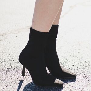 Elongated points and sculpted heels complete the ultra-sleek sock silhouette of Steve Madden’s Vakay booties. Size 8.5, new without box. Retail $130, retired style.