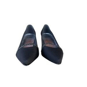 Stuart Weitzman "Icing" Pump. Elegant black pump with braided glitter embellishment at vamp. Peau de soie fabric upper. Covered heel. Step out in style with these elegant black heels. Perfect for any occasion, these shoes offer both comfort and sophistication.