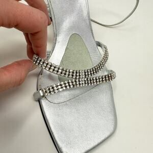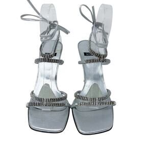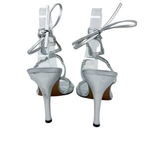 NWOB Stuart Weitzman Metallic Silver Strappy Stiletto Heels w Rhinestones Size 9